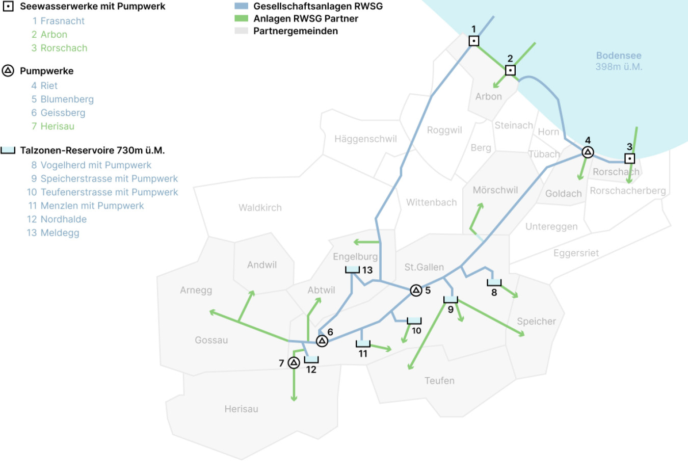 Heute sind zwölf Ostschweizer Partner an diesem Unternehmen beteiligt. Die RWSG ist offen für die Aufnahme weiterer Partner und geht Kooperationen ein, wo dies sinnvoll ist.